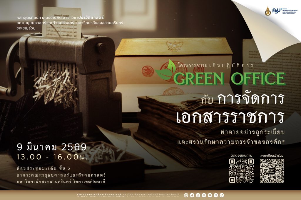 🌱📁 ขอเชิญเข้าร่วมโครงการอบรมเชิงปฏิบัติการ “Green Office กับการจัดการเอกสารราชการ: ทำลายอย่างถูกระเบียบ และสงวนรักษาความทรงจำขององค์กร” การจัดการเอกสาร ไม่ใช่แค่เรื่องขยะแต่คือเรื่องของ