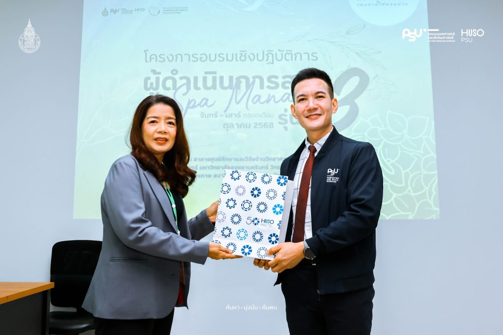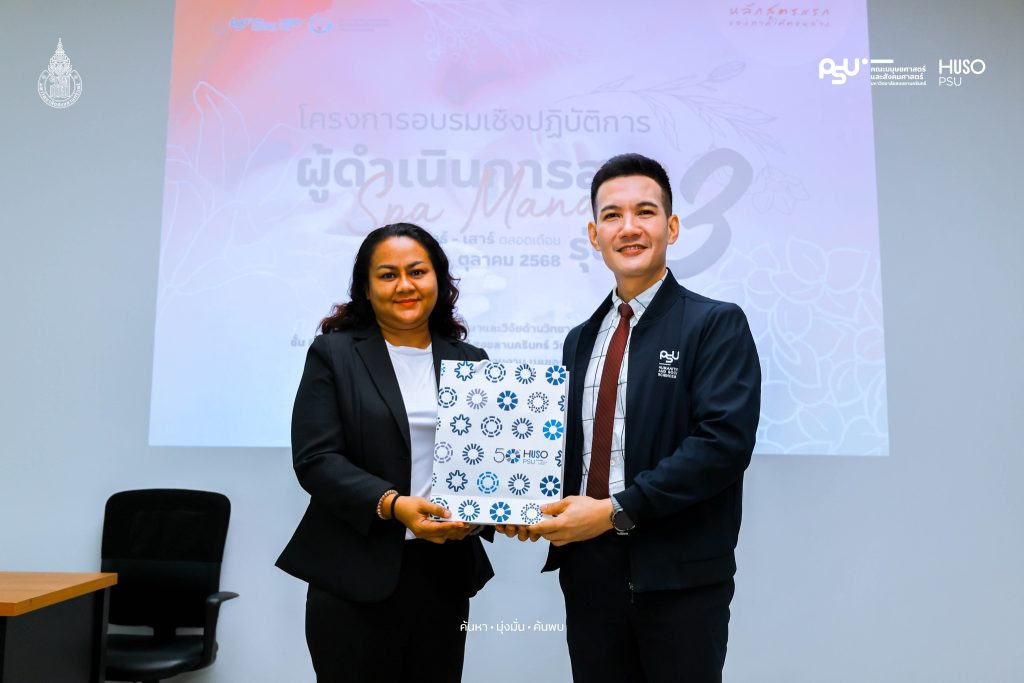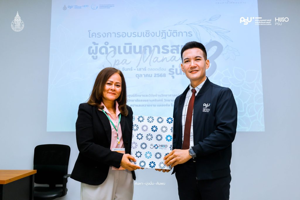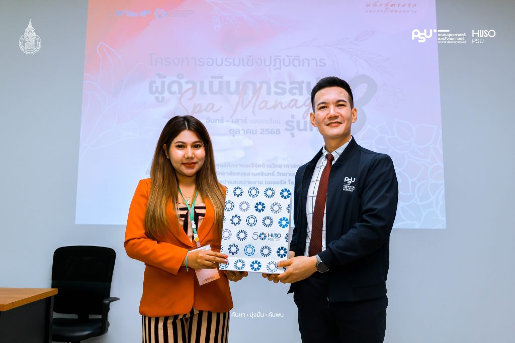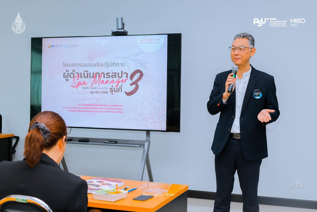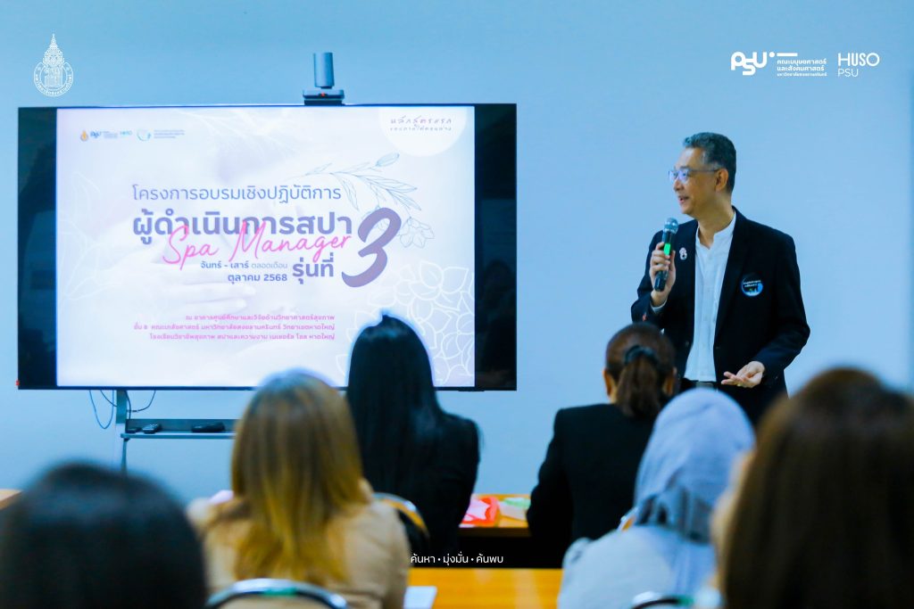 โดยเมื่อวันอังคาร ที่ 14 ตุลาคม 2568 ที่ผ่านมา เป็นกิจกรรมปฐมนิเทศ แก่ผู้เข้าร่วมอบรมจำนวน 23 คน ณ อาคารศูนย์ศึกษาและวิจัยด้านวิทยาศาสตร์สุขภาพ คณะเภสัชศาสตร์ มหาวิทยาลัยสงขลานครินทร์ วิทยาเขตหาดใหญ่ โดยได้รับเกียรติจาก ผู้ช่วยศาสตราจารย์ ดร.เชิดชัย อุดมพันธ์ คณบดีคณะมนุษยศาสตร์และสังคมศาสตร์ พร้อมด้วย ผู้ช่วยศาสตราจารย์อับดุลคอลิก อัรรอฮีมีย์ ผู้ช่วยคณบดีงานกิจการและบริการเพื่อสังคม คณะมนุษยศาสตร์และสังคมศาสตร์ มหาวิทยาลัยสงขลานครินทร์ ร่วมกล่าวเปิดการอบรมและปฐมนิเทศ ในการนี้ คุณเกรียงไกร สีหะวงษ์ ประธานชมรมธุรกิจบริการสุขภาพภาคใต้ ( ตอนล่าง ) ร่วมกล่าวต้อนรับผู้เข้าอบรมอย่างอบอุ่น สำหรับหลักสูตรผู้ดำเนินการสปาเพื่อสุขภาพ 100 ชั่วโมง รุ่นที่ 3 จัดอบรมระหว่างวันที่ 14 – 31 ตุลาคม 2567 นี้ ซึ่งในวันสุดท้ายจะเป็นการทัศนศึกษา ณ สถานประกอบการสปา ในพื้นที่จังหวัดสงขลา