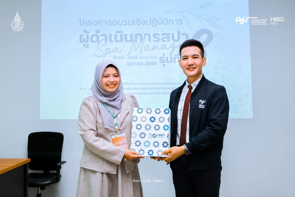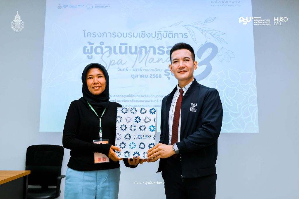 ในครั้งนี้ ทางคณะมนุษยศาสตร์และสังคมศาสตร์ มหาวิทยาลัยสงขลานครินทร์ จัดขึ้นเป็นรุ่นที่ 3 ภายใต้บันทึกข้อตกลงความร่วมมือด้านหลักสูตรผู้ดำเนินการสปา ระหว่าง มหาวิทยาลัยสงขลานครินทร์ โดย คณะมนุษยศาสตร์และสังคมศาสตร์ กับ ชมรมธุรกิจบริการสุขภาพภาคใต้ตอนล่าง ซึ่งทั้งสองหน่วยงานได้พัฒนาหลักสูตรที่มีความโดดเด่นและแตกต่างกับหลักสูตรผู้ดำเนินการสปาเพื่อสุขภาพ 100 ชั่วโมง จากที่อื่น ๆ โดยมีการสอดแทรกเนื้อหาด้าน “สปาฮาลาล” โดยการสนับสนุนด้านวิทยากรผู้มากประสบการณ์จากสถาบันฮาลาล มหาวิทยาลัยสงขลานครินทร์ และเป็นหลักสูตรแรกของภาคใต้ตอนล่าง ที่ได้รับการรับรองหลักสูตรจากกรมสนับสนุนบริการสุขภาพ กระทรวงสาธารณสุข เพื่อมุ่งเสริมสร้างศักยภาพให้ผู้เข้าอบรมสามารถบริหารจัดการสถานประกอบการสปาได้อย่างมีมาตรฐานตามที่กฎหมายกำหนด และเตรียมความพร้อมสูงสุดในการสอบขึ้นทะเบียนเพื่อรับใบอนุญาตเป็นผู้ดำเนินการสปาเพื่อสุขภาพ