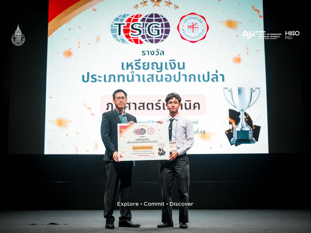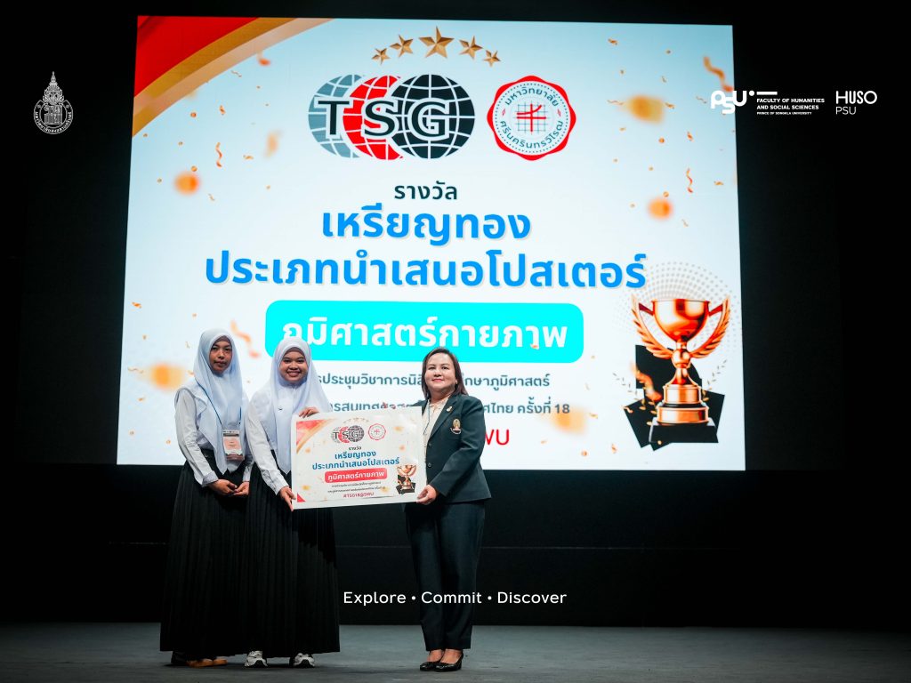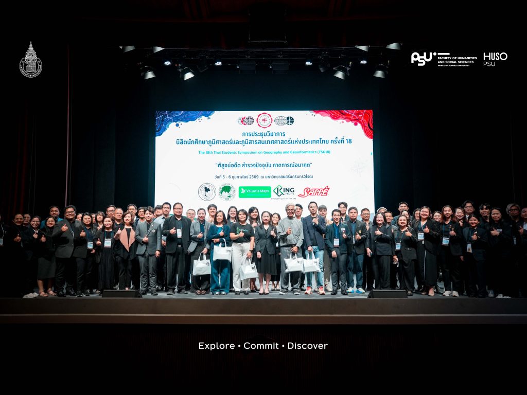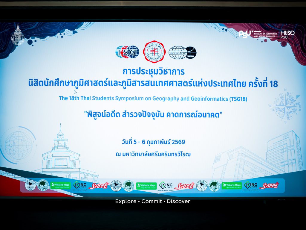 นาทีนี้ต้องหลีกทางให้ความปังของตัวตึงจากแดนใต้ เมื่อนักศึกษาหลักสูตรวิทยาศาสตรบัณฑิต สาขาวิชาภูมิศาสตร์ คณะมนุษยศาสตร์และสังคมศาสตร์ มหาวิทยาลัยสงขลานครินทร์ เขาไม่ได้มาเล่นๆ แต่ยกทัพไปโชว์ความจึ้งไกลถึงกรุงเทพมหานคร อมรรัตนโกสินทร์ฯ ใน :: { การประชุมวิชาการนิสิตนักศึกษาภูมิศาสตร์และภูมิสารสนเทศแห่งประเทศไทย ครั้งที่ 18 } :: หรือ TSG18 ณ มหาวิทยาลัยศรีนครินทรวิโรฒ ( ประสานมิตร ) เมื่อวันที่ 5-6 กุมภาพันธ์ 2569 ที่ผ่านมา งานนี้หลักสูตรวิทยาศาสตรบัณฑิต สาขาวิชาภูมิศาสตร์ คณะมนุษยศาสตร์และสังคมศาสตร์ มหาวิทยาลัยสงขลานครินทร์ ประกาศศักดาตัวตึงภาคใต้ กวาดรางวัลใหญ่ทั้งเหรียญทองและเหรียญเงินกลับบ้านแบบสับแบบปัง ท่ามกลางคู่แข่งจาก 16 สถาบันทั่วประเทศกว่า 350 คน