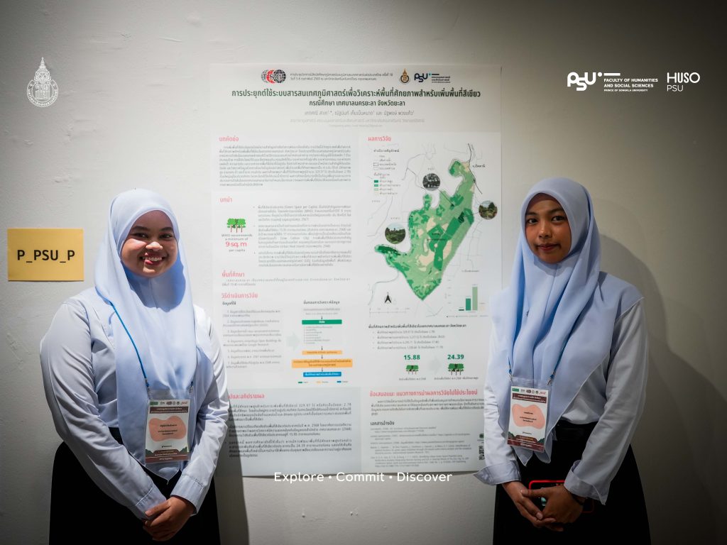 เริ่มที่รางวัลใหญ่ระดับมงลง เหรียญทองการนำเสนอผลงานแบบโปสเตอร์ ( Poster Presentation ) กลุ่ม #ภูมิศาสตร์กายภาพ ตกเป็นของสองสาวคนเก่ง ” เกตศณี สาเก ” และ ” ณัฐนันท์ เก็มเบ็นหมาด ” นักศึกษาชั้นปีที่ 3 ที่โชว์กึ๋นวิจัยเรื่องการใช้ GIS วิเคราะห์พื้นที่ศักยภาพเพื่อเพิ่มพื้นที่สีเขียวในเทศบาลนครยะลา ส่วนฝั่งหนุ่มหล่อ ” มูฮัมมัดฟัตฮี แวเงาะ ” ก็ไม่น้อยหน้า คว้าเหรียญเงินการนำเสนอแบบปากเปล่า ( Oral Presentation ) กลุ่ม #ภูมิศาสตร์เทคนิค จากผลงานวิเคราะห์จุดร้อน (Getis-Ord Gi*) ระบุจุดเสี่ยงอุบัติเหตุบนทางหลวงจังหวัดปัตตานี โดยมี ดร.นัฐพงษ์ พวงแก้ว เป็นอาจารย์ที่ปรึกษาคอยดันหลังจนประสบความสำเร็จ