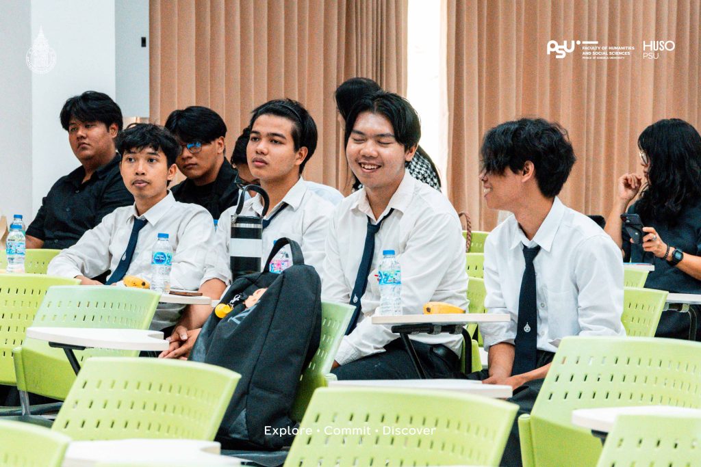 คณะมนุษยศาสตร์และสังคมศาสตร์ มหาวิทยาลัยสงขลานครินทร์ โดยหลักสูตรศิลปศาสตรบัณฑิต สาขาวิชาภาษาญี่ปุ่น โดยการสนับสนุนจาก มูลนิธิ Hakuhodo จัดกิจกรรมดี ๆ สำหรับน้อง ๆ ที่มีความฝันอยากเป็น ” คุณครูสอนภาษาญี่ปุ่น ” ใน :: [ ” การบรรยายพิเศษ หัวข้อ ” เส้นทางสู่อาชีพการสอนภาษาญี่ปุ่นในโรงเรียนมัธยมศึกษา ” ] :: เมื่อวันพุธ ที่ 30 กรกฎาคม 2568 ที่ผ่านมา ได้รับเกียรติจากวิทยากรสุดปัง 3 ท่าน ได้แก่ อาจารย์กอปรคุณ ชุมวรรณศรี จากโรงเรียนคณะราษฎรบำรุง จังหวัดยะลา อาจารย์ธนวรรณ สังข์คง จากโรงเรียนมหาวชิราวุธ จังหวัดสงขลา และอาจารย์ภัศรา ยอดสุวรรณ์ จากโรงเรียนวรนารีเฉลิม จังหวัดสงขลา มาเล่าแบ่งปันประสบการณ์และเคล็ดลับอย่างสนุกสนาน