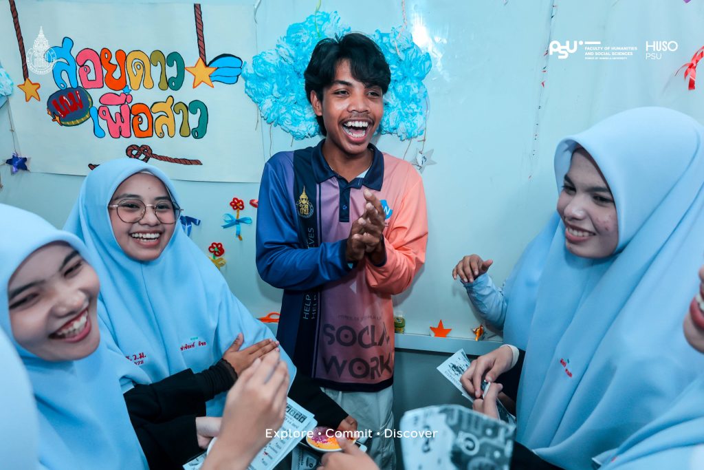 คณะมนุษยศาสตร์และสังคมศาสตร์ มหาวิทยาลัยสงขลานครินทร์ โดยหลักสูตรสังคมสงเคราะห์ศาสตรบัณฑิต เปิดพื้นที่ปลอดภัย เนรมิตพื้นที่แห่งความสุข กิจกรรมให้น้อง ๆ นักเรียน นักศึกษา และผู้ที่สนใจเข้าร่วม :: { กิจกรรม ” สังคมสงเคราะห์ สร้างสุข สู่ความยั่งยืน ” } :: ในงาน ม.อ.วิชาการ 2568 เมื่อวันพุธ ที่ 3 กันยายน 2568 ที่ผ่านมา ณ ห้อง 19103 ชั้น 1 อาคารเรียนรวม ตึก 19 มหาวิทยาลัยสงขลานครินทร์ วิทยาเขตปัตตานี ได้รับความสนใจจากน้อง ๆ นักเรียนประถมศึกษา เข้าร่วมกิจกรรมโซนต่าง ๆ จนพื้นที่ในห้องดูแน่นไปเลย