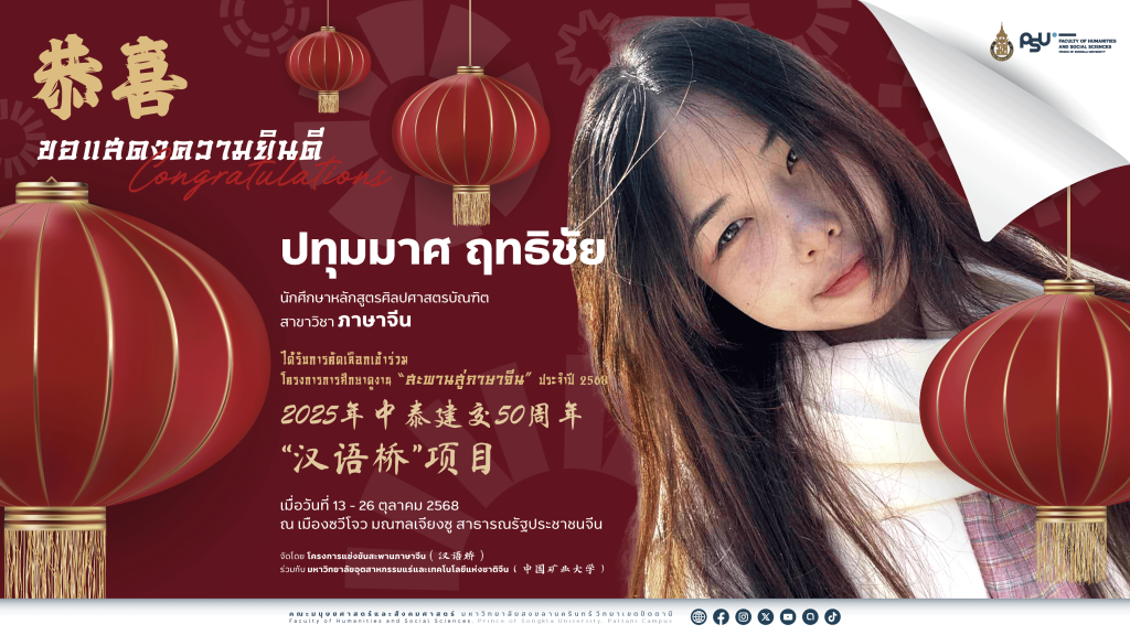 🎉🎉🎉 #ขอแสดงความยินดี กับ 🔵⚪ :: [ ปทุมมาศ ฤทธิชัย ] :: นักศึกษาหลักสูตรศิลปศาสตรบัณฑิต สาขาวิชา #ภาษาจีน คณะมนุษยศาสตร์และสังคมศาสตร์ มหาวิทยาลัยสงขลานครินทร์