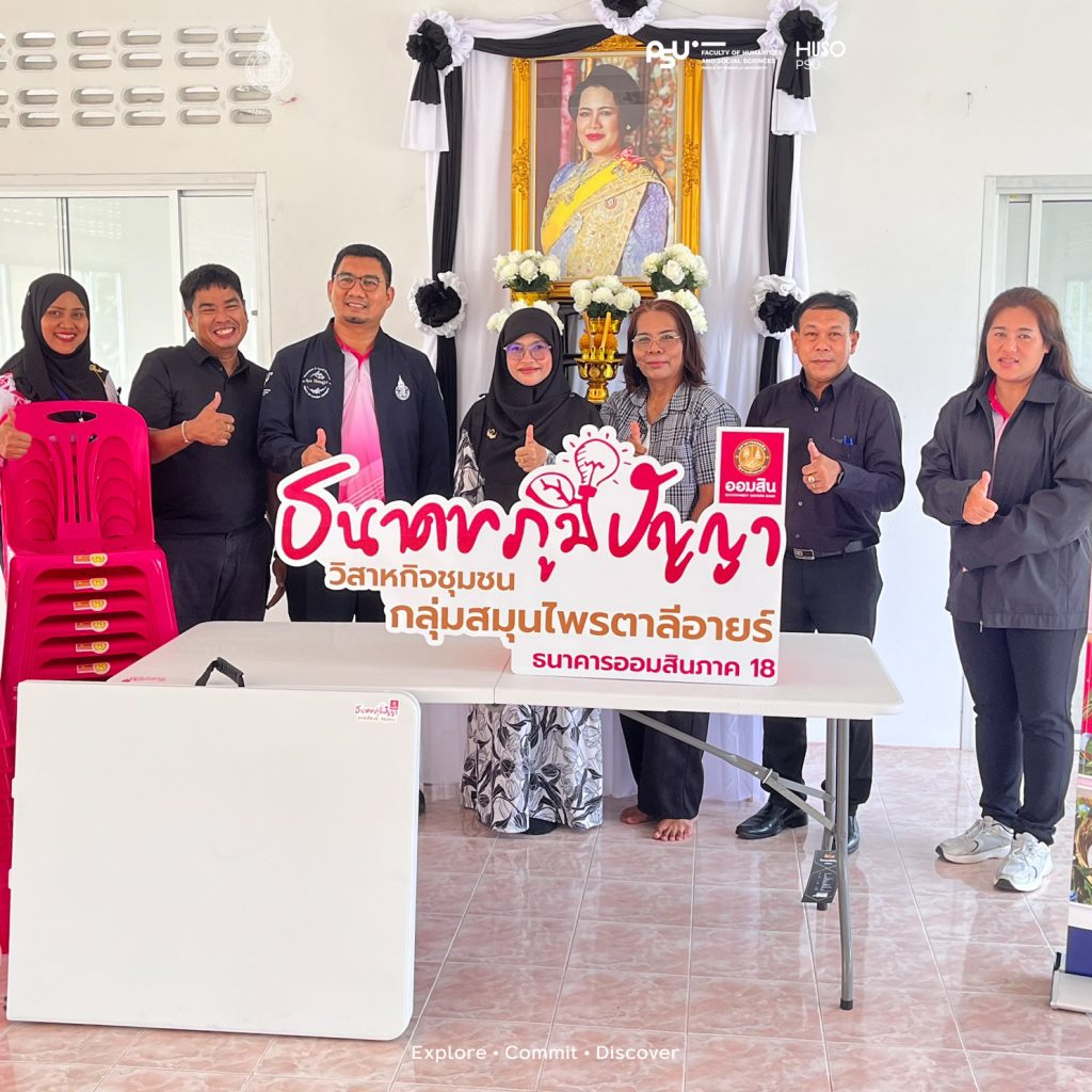 คณะมนุษยศาสตร์และสังคมศาสตร์ มหาวิทยาลัยสงขลานครินทร์ ในฐานะเครือข่ายพัฒนาวิสาหกิจชุมชน นำโดยผู้ช่วยศาสตราจารย์อับดุลคอลิก อัรรอฮีมีย์ ผู้ช่วยคณบดีงานกิจการและบริการเพื่อสังคม ร่วมกับธนาคารออมสิน ภาค 18 จังหวัดสงขลา ลงพื้นที่โครงการฟาร์มตัวอย่างในสมเด็จพระนางเจ้าสิริกิติ์ พระบรมราชินีนาถ พระบรมราชชนนีพันปีหลวง บ้านสีปาย ตำบลตาลีอายร์ อำเภอยะหริ่ง จังหวัดปัตตานี เมื่อวันที่ 10 พฤศจิกายน 2568 ที่ผ่านมา เพื่อมอบอุปกรณ์สนับสนุนการดำเนินงานของ วิสาหกิจชุมชนกลุ่มแปรรูปสมุนไพรไทยตาลีอายร์ ( TALI – AI HERBS ) ภายใต้โครงการ ” ธนาคารภูมิปัญญาศูนย์เรียนรู้คู่ชุมชน ” โดยมีตัวแทนชุมชนเข้าร่วมรับมอบ