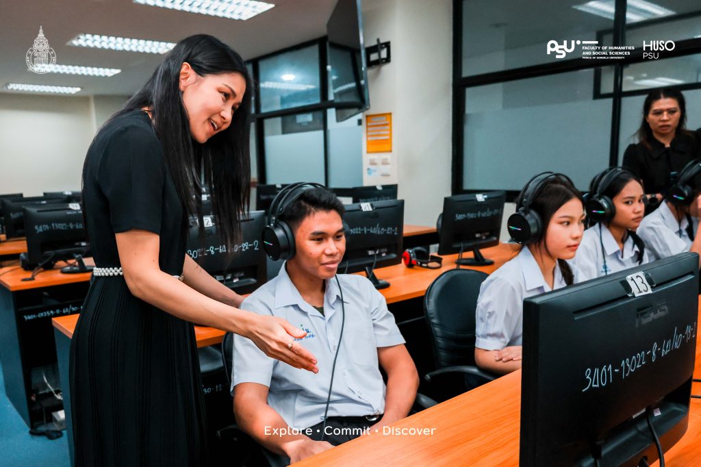 วงการภาษาจีนภาคใต้ตอนล่าง ต้องสั่นสะเทือน หลักสูตรศิลปศาสตรบัณฑิต สาขาวิชาภาษาจีน คณะมนุษยศาสตร์และสังคมศาสตร์ มหาวิทยาลัยสงขลานครินทร์ จัดเต็มเปิดห้อง 50117 สนามสอบหลักที่ใช้สอบวัดระดับความรู้ภาษาจีน ( HSK ) จริง เพื่อต้อนรับนักเรียนชั้นมัธยมศึกษาปีที่ 6 จากโรงเรียนเดชะปัตตนยานุกูล จังหวัดปัตตานี ในโครงการ “ ห้องสอบจำลองสอบวัดระดับความรู้ภาษาจีน ( HSK ) ระดับ 2 ” เมื่อบ่ายวันที่ 23 ธันวาคม 2568 ที่ผ่านมา งานนี้บอกเลยว่าเป็นการสอบแบบ Real Time เสมือนจริงทุกประการ ไม่ว่าจะเป็นโต๊ะ เก้าอี้ คอมพิวเตอร์ และโปรแกรมที่ใช้สอบ คือของจริงที่ใช้สอบจริง ๆ เพื่อวัดระดับและอัปสกิลภาษาจีนให้น้อง ๆ นักเรียนแบบก้าวกระโดด
