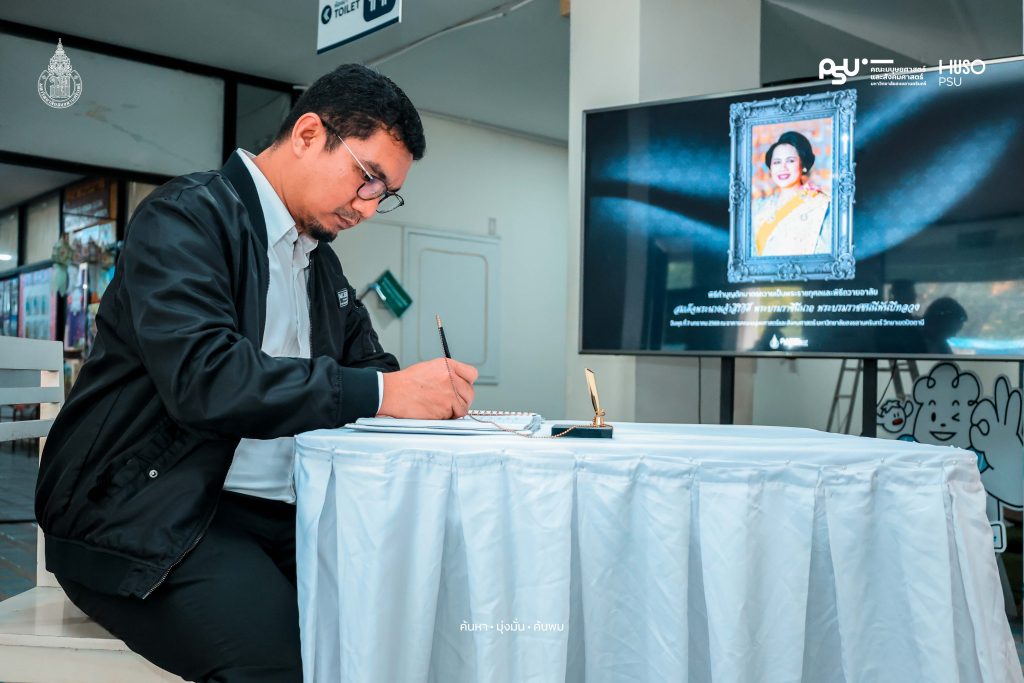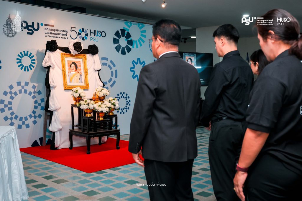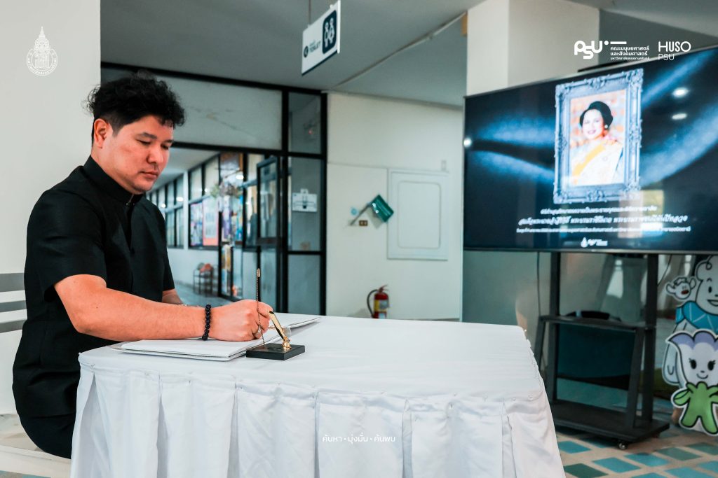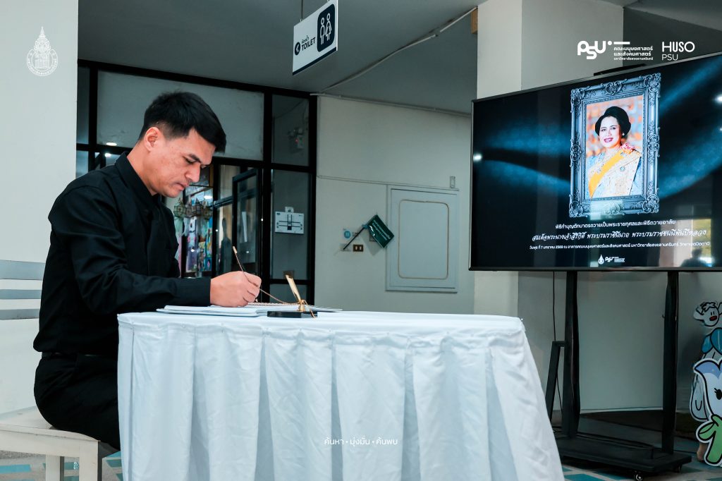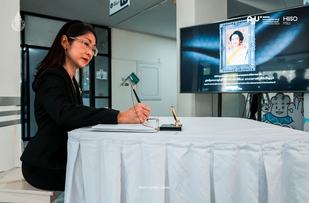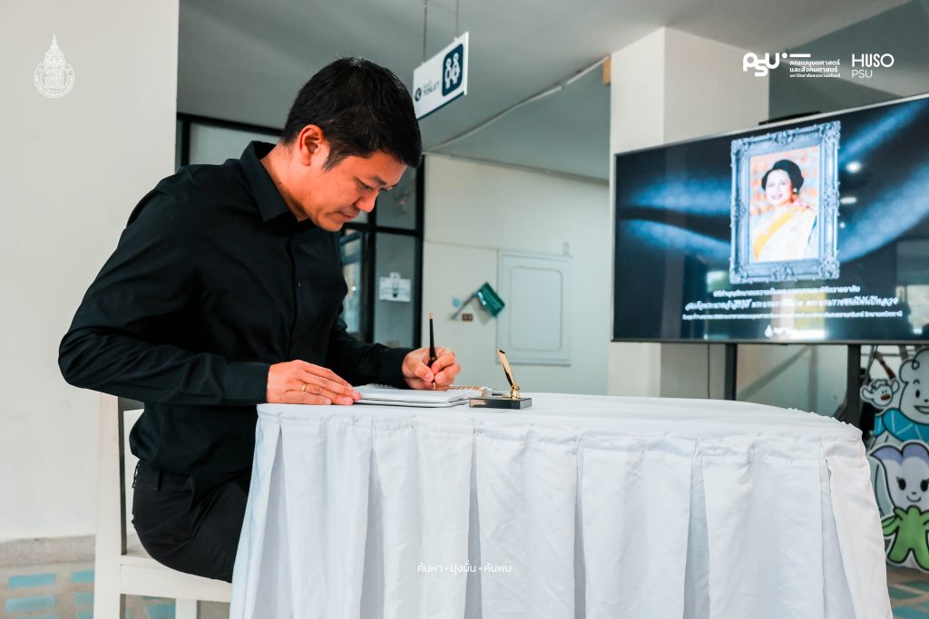 คณะมนุษยศาสตร์และสังคมศาสตร์ มหาวิทยาลัยสงขลานครินทร์ จัดกิจกรรมถวายความอาลัยแด่สมเด็จพระนางเจ้าสิริกิติ์ พระบรมราชินีนาถ พระบรมราชชนนีพันปีหลวง เพื่อแสดงความจงรักภักดีและน้อมรำลึกและสำนึกในพระมหากรุณาธิคุณ เมื่อวันพุธที่ 7 มกราคม 2569 ที่ผ่านมา ณ โถงกลาง อาคารคณะมนุษยศาสตร์และสังคมศาสตร์ มหาวิทยาลัยสงขลานครินทร์ วิทยาเขตปัตตานี