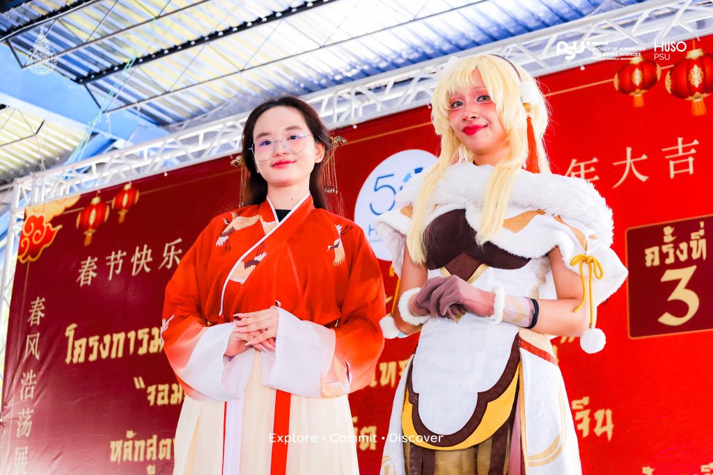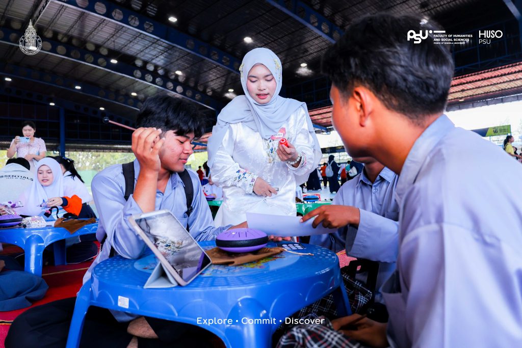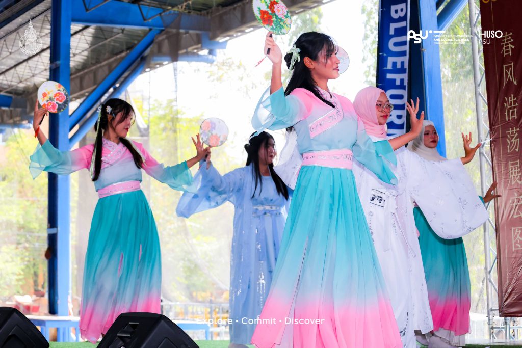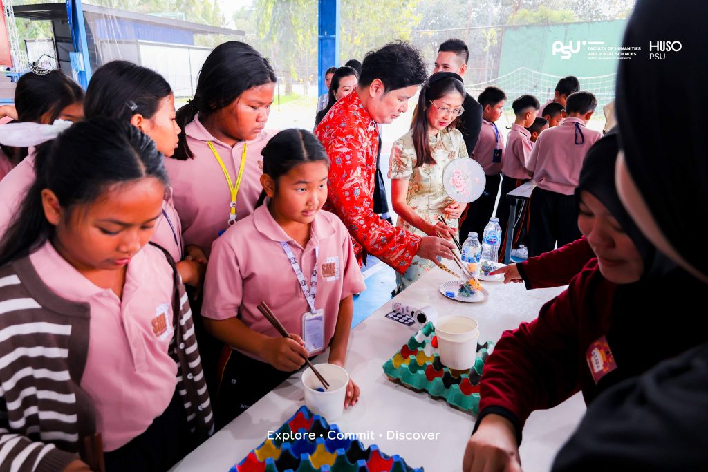 เปิดงานกันแบบสับแบบจึ้งด้วยพิธีเปิดจากคณบดีคณะมนุษยศาสตร์และสังคมศาสตร์ ผู้ช่วยศาสตราจารย์ ดร.เชิดชัย อุดมพันธ์ พร้อมได้รับเกียรติจาก รองศาสตราจารย์ ดร.มนทิรา ลีลาเกรียงศักดิ์ รองอธิการบดีฝ่ายวิชาการ วิทยาเขตปัตตานี มาให้โอวาทเติมพลังใจให้นักเรียนนักศึกษาที่ตบเท้าเข้าร่วมงานกันอย่างล้นหลาม ไฮไลต์ที่ทำเอาลานลาแมสะมิแลสะเทือนคือการแสดงจากนักศึกษาสาขาวิชาภาษาจีนที่โชว์สเต็ปจิตลีลากรุยกรายงามชดชอย ทั้งร่ายรำและนำเสนอศิลปะจีนที่หาชมได้ยาก ก่อนจะเข้าสู่ช่วงความสนุกกับการแนะนำซุ้มกิจกรรมต่างๆ ที่เน้นให้ผู้เข้าร่วมได้ลงมือทำจริงเจ็บจริง ( Learning by Doing ) อาทิ การเขียนพู่กันจีน ศิลปะการตัดกระดาษ และการสาธิตการใช้ตะเกียบตามขนบธรรมเนียม เพื่อสร้างประสบการณ์ตรงตามวัตถุประสงค์ของโครงการที่ต้องการให้ผู้เรียนได้บูรณาการความรู้จากห้องเรียนสู่การปฏิบัติจริงในที่สาธารณะ