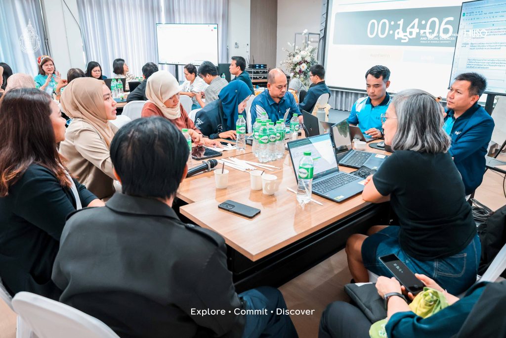 วันที่สองคณะผู้บริหารแบ่งกลุ่มระดมความคิดร่วมกันกำหนดตัวชี้วัดเชิงกลยุทธ์และแผนปฏิบัติการใน 3 ประเด็นยุทธศาสตร์หลัก ได้แก่ ยุทธศาสตร์ที่ 1 ความเป็นเลิศทางวิชาการและทักษะแห่งอนาคต มุ่งผลิตบัณฑิตที่มีทักษะดิจิทัลและพร้อมทำงานในตลาดแรงงานสากล ยุทธศาสตร์ที่ 2 นวัตกรรม Soft Power และพหุวัฒนธรรมเชิงสร้างสรรค์ เพื่อสร้างมูลค่าเพิ่มจากทุนทางวัฒนธรรมผ่านเครือข่ายความร่วมมือ และยุทธศาสตร์ที่ 3 การบูรณาการเครือข่ายและโอกาสระดับอาเซียน เพื่อขยายฐานความร่วมมือในระดับภูมิภาคและนานาชาติ
