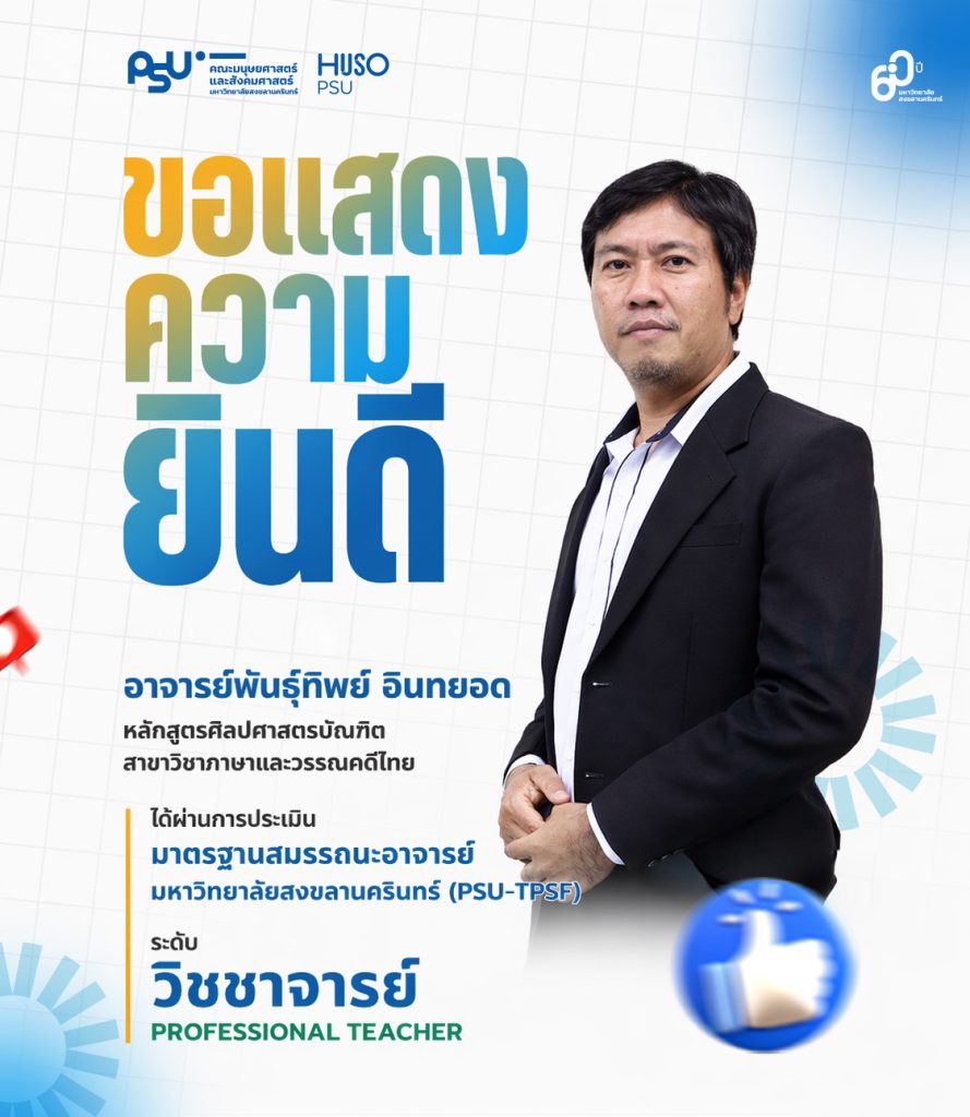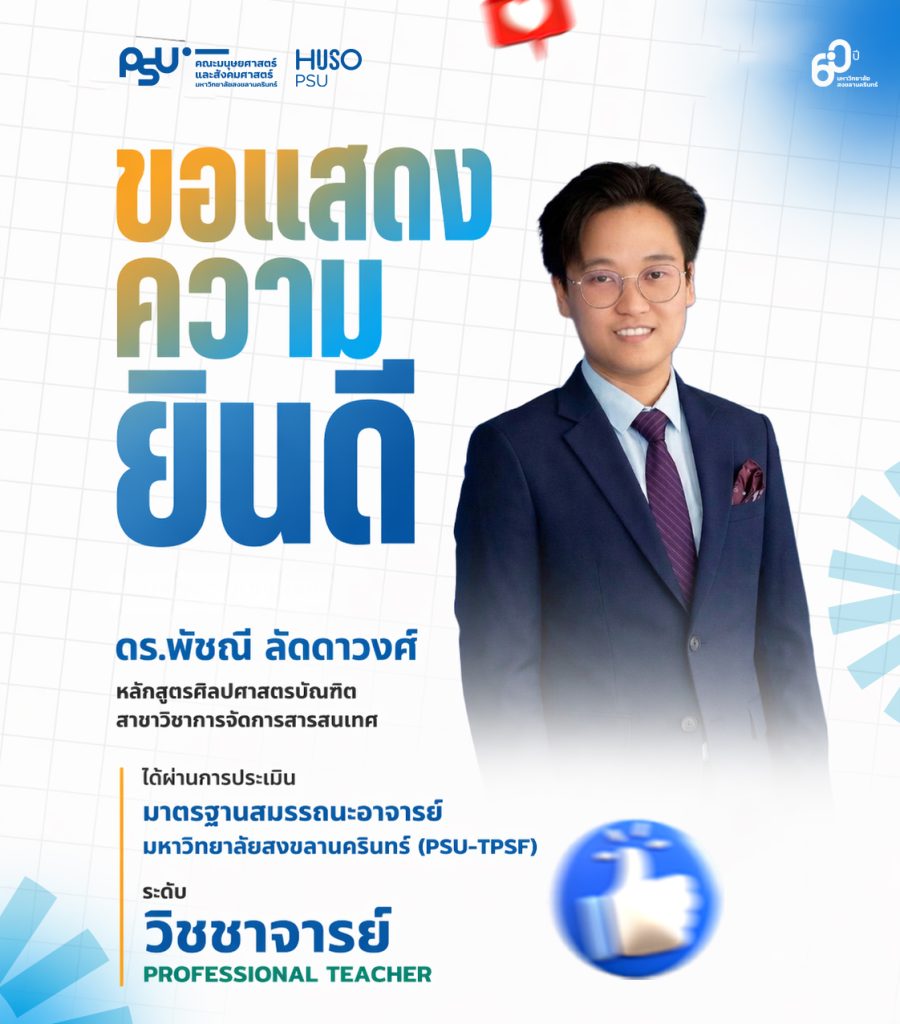 ขอแสดงความยินดีกับอาจารย์ที่ได้รับการประเมินมาตรฐานสมรรถนะอาจารย์ มหาวิทยาลัยสงขลานครินทร์ (PSU-TPSF)