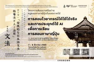 ขอเชิญเข้าร่วมอบรม โครงการ “ สัมมนาการพัฒนาเครือข่ายครูสอนภาษาญี่ปุ่นในเขตภาคใต้ ” การสอนไวยากรณ์ให้ใช้ได้จริงและการประยุกต์ใช้ AI เพื่อการเรียนการสอนภาษาญี่ปุ่น อ่านต่อ